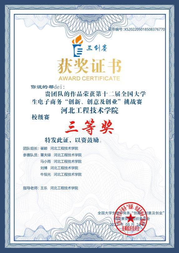 学习上成绩以平均分91.99排名第二,综合考评第二。积极查阅与专业相关的书籍,以提高自己的专业知识水平,还积极参加一些学习型竞赛并取得了不错的成绩,三创赛校级三等奖、互联网+大学生创新创业大赛院级选拔赛一等奖。社会实践上,极锻炼自己各方面的能力,全方位提升自己的素质,积极参与志愿服务,还担任了学委的职务,积极做好班级和老师的桥梁,得到了老师和同学的一致好评。生活勤俭节约,总是力所能及的帮助周围有困难的同学。在生活上,作风严谨,主动帮助他人,能起到良好的表率作用。
