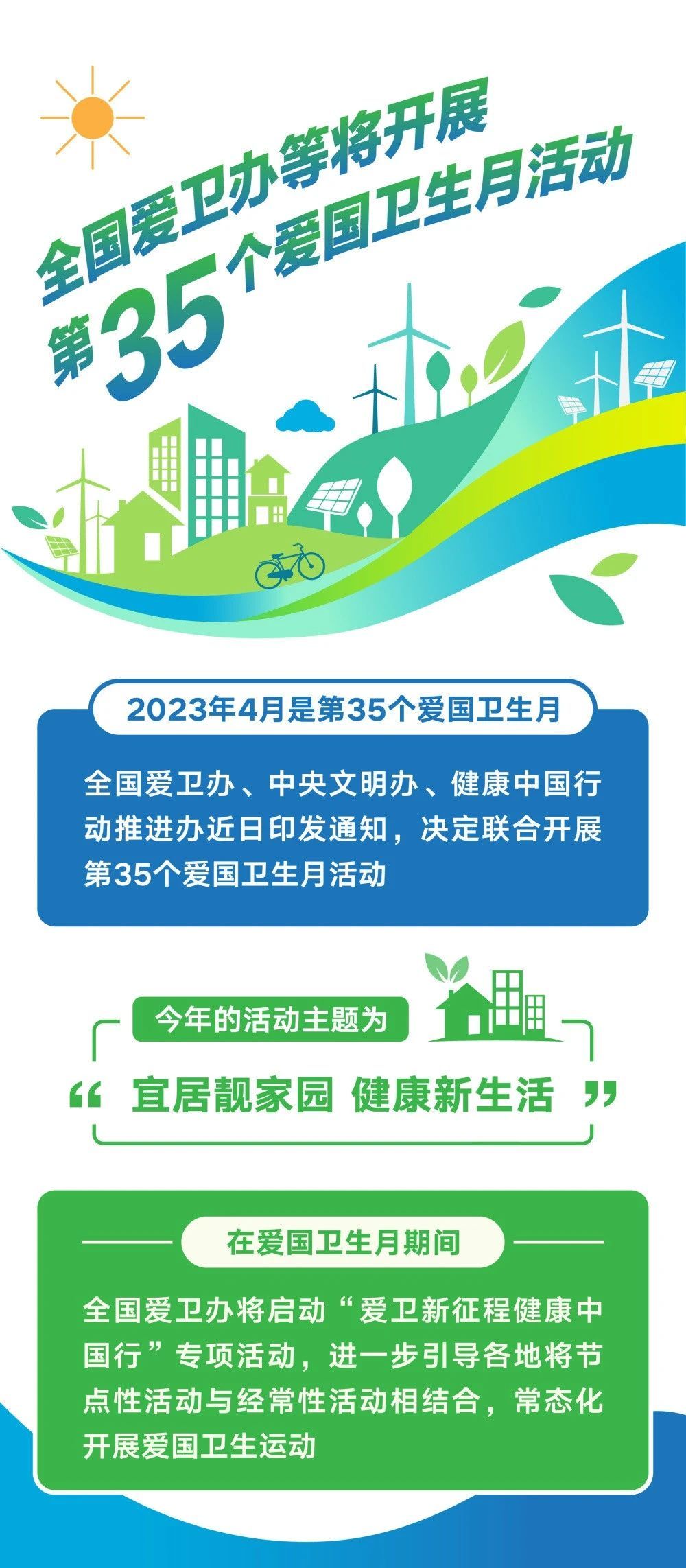 今年4月是第35个爱国卫生月今年的活动主题为“宜居靓家园 健康新生活”活动内容: