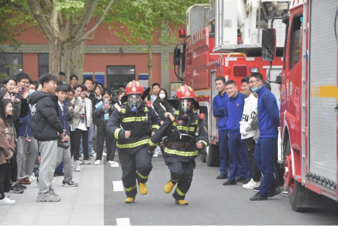 活动伊始,由消防队队长为参与人员讲解活动流程,宣布活动开始。活动过程中消防员演示消防器材的使用,消防服的穿戴;并积极鼓励参与人员进行尝试。通过这次演示,是大学生体验到了在消防过程中的体验,激发了去了解的兴趣,使大学生更有兴趣自主了解消防相关的知识。