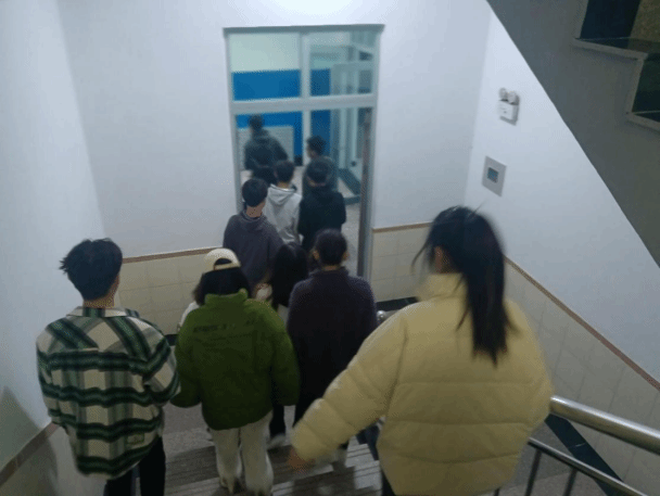 演练活动准备就绪。各学院负责人、楼层指挥人迅速到班到岗,安全工作部肖悦龙部长吹哨模拟火灾开始,随着哨声,拉开了此次消防疏散演习的帷幕,大家听到哨声后,有序撤离本班教室,沿指定路线快速下楼。