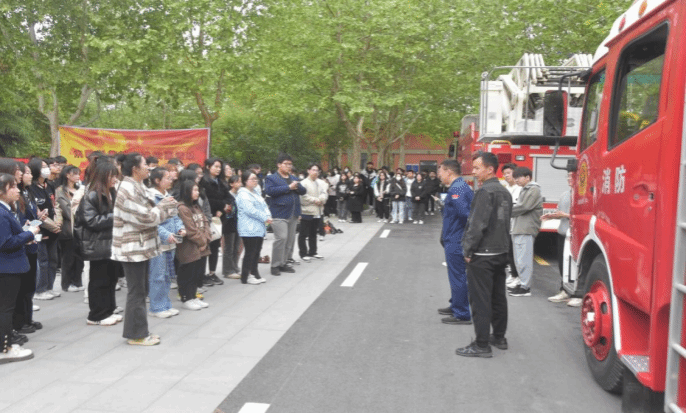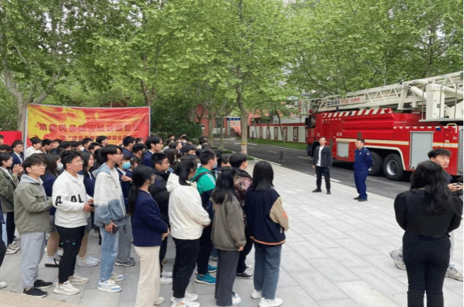 2023年4月24日,校大学生消防协会于孔子像前举行“落实安全责任,推动安全发展”消防车讲解活动。参与人员有校大学生消防协会成员以及红旗大街消防救援站消防员和参与活动的大学生。
