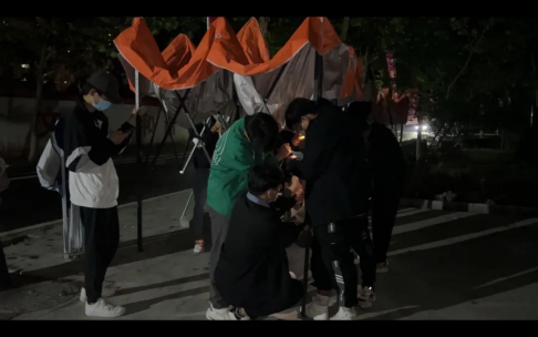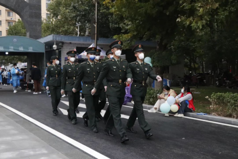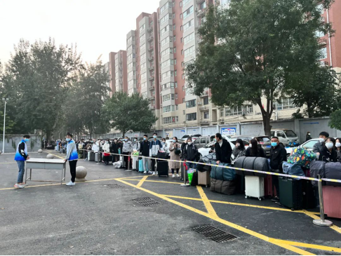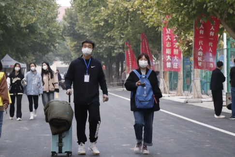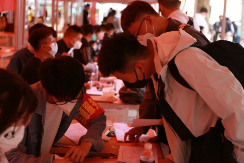 都有序在校园里的各个角落等候