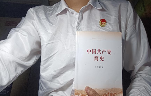 学生与《中国共产党简史》合影