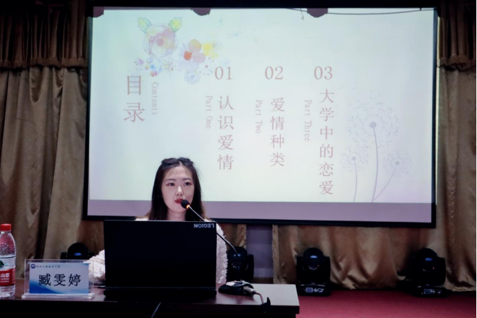 为了引导学生树立正确的恋爱观,缓解疫情防控期间学生的情绪波动,塑造大学生健全的人格,提高大学生的心理素质。我校于2022年5月9日晚七点在次教101举办了由大学生心理健康教育指导中心臧雯婷老师主讲的大学生恋爱心理讲座——“在爱中成长”。