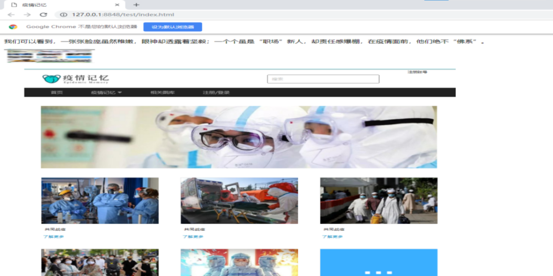 比赛在4月24日顺利开展,学生们结合抗疫题材,设计、制作了关于病毒知识的普及、致敬最美的逆行者、疫情防控期间的防护要求等内容的网页。参赛作品主题深刻,温暖而有力的文字诉说着学生们抗疫的决心,明艳而生动的配图记录着学生们抗疫的行动,独特而美丽的设计彰显着学生们抗疫的理念。参赛者们在展现自身独特设计创意的同时,也表现出了对疫情能够早日结束的期盼。最后,活动负责人评选出优秀作品并颁发奖状。