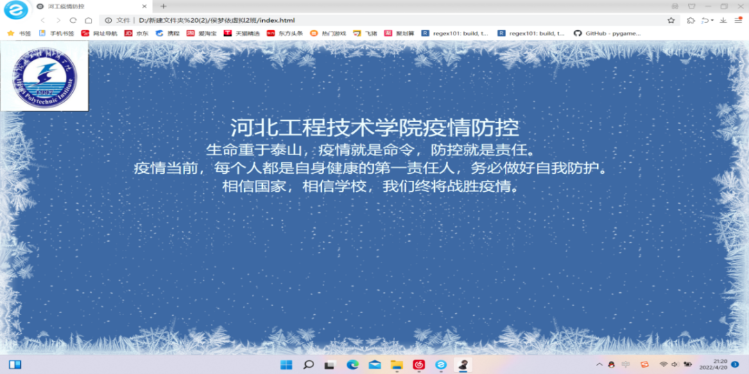为全面落实疫情防控宣传工作,增强学生们的防疫意识,引导学生众志成城、团结一心、共同做好疫情防控工作,提高学生们的网页设计能力和创新能力。人工智能与大数据学院学生教科研管理协会于4月24日举办疫情防控网页设计大赛。