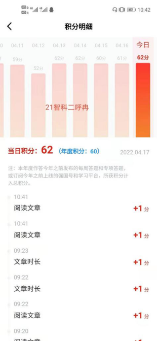 学生每日学习“学习强国”情况